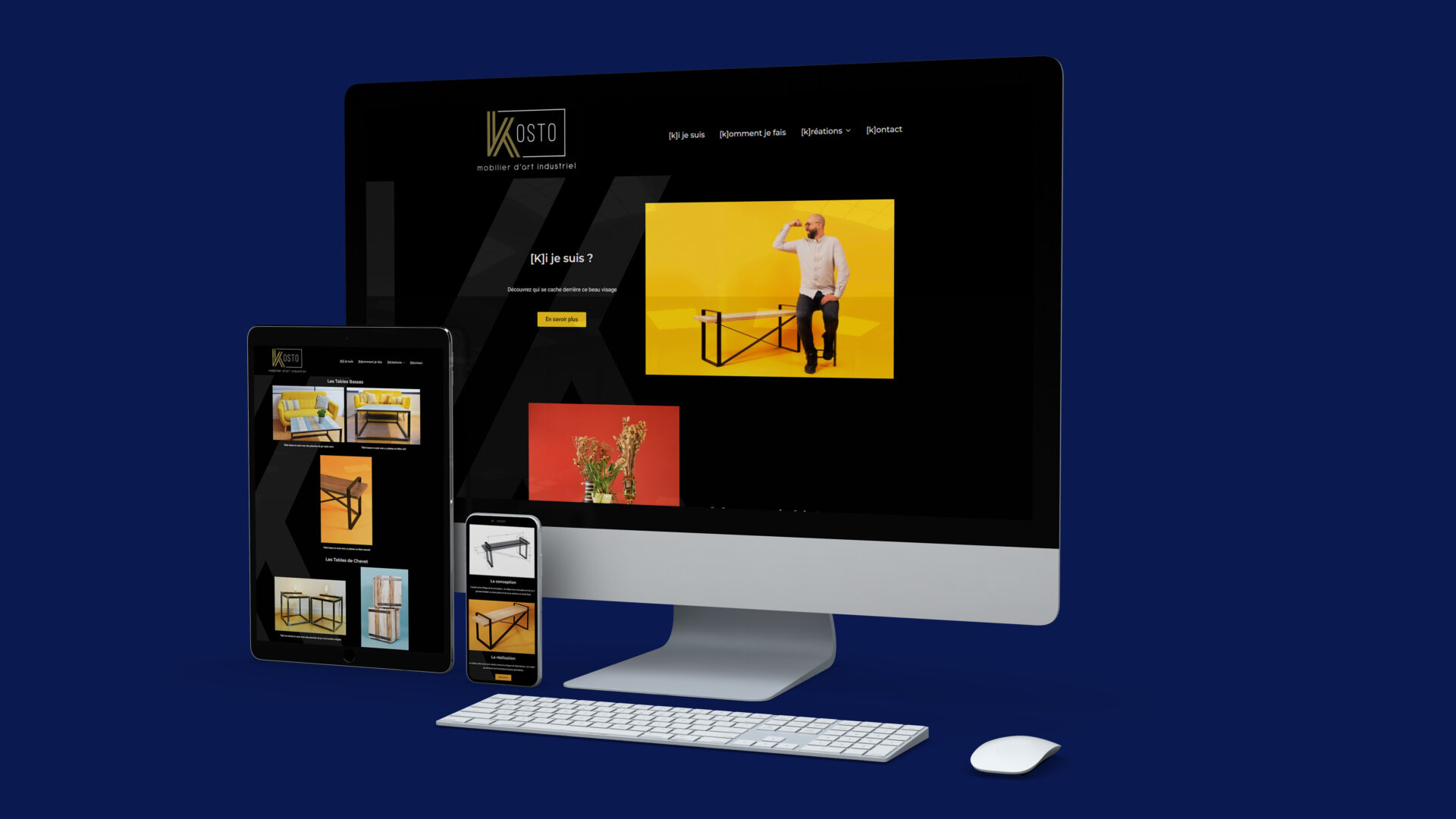 Julien, créateur de Kosto, voulait un site vitrine pour présenter son travail de création de mobilier sur mesure.